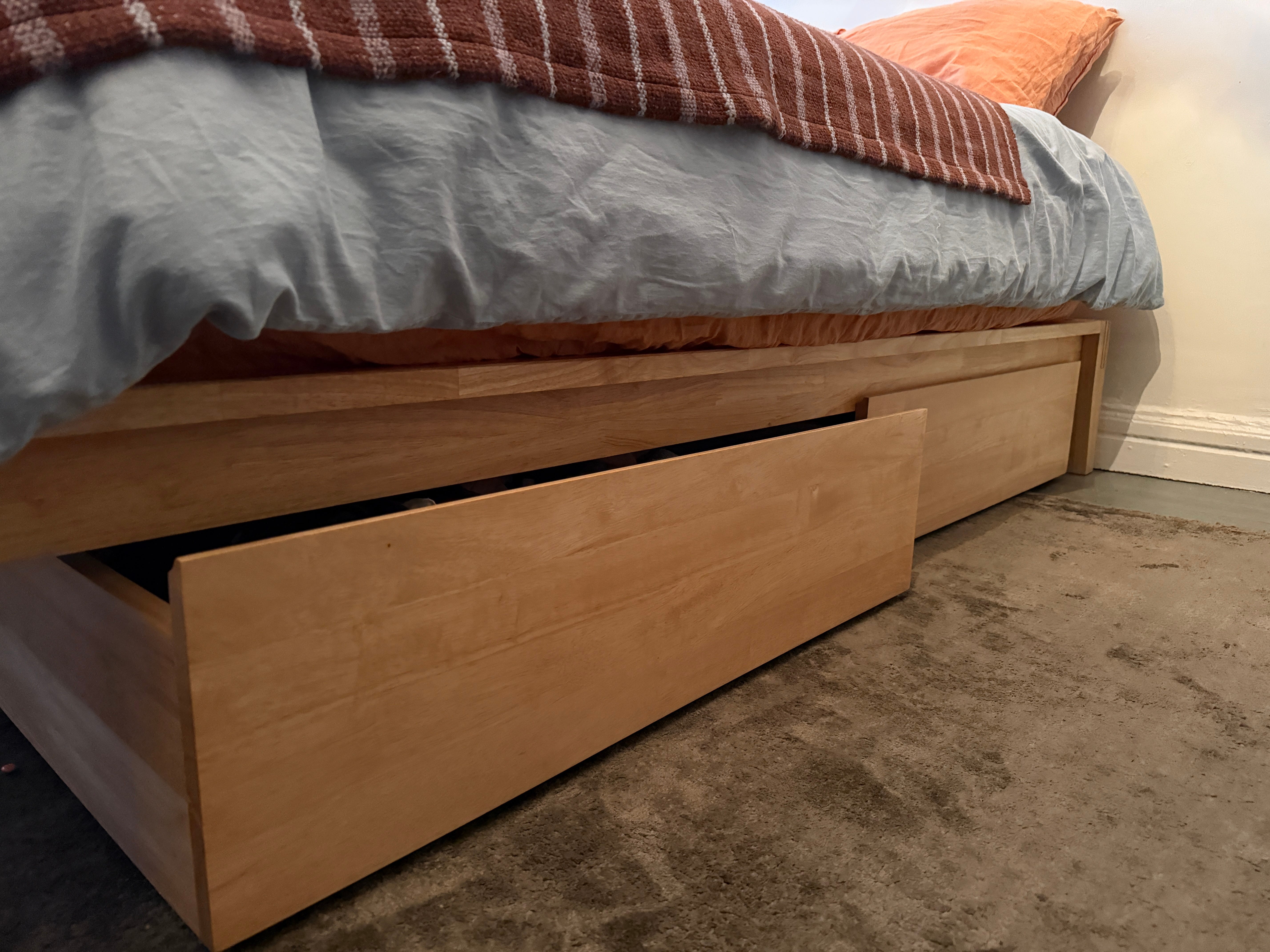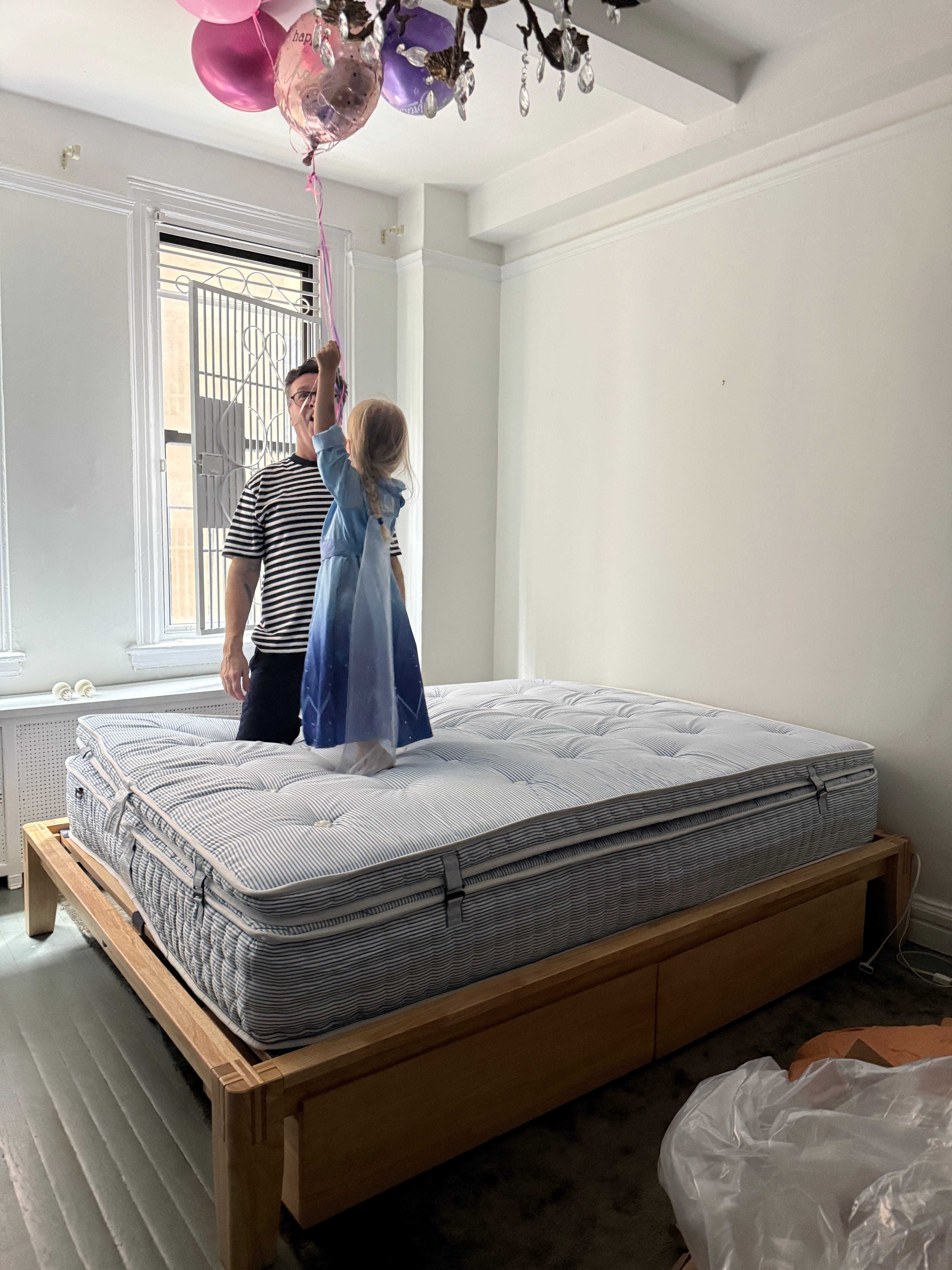 I chose a Thuma bed frame (the Classic in the natural finish), which famously boasts a no-hardware construction. I am so fucking proud to say that my daughter watched me assemble that bed all by myself (and yes, the pieces were heavy). The moment I finished I was like, “RAAAWWHHHRRR!! DID YOU SEE MUMMY DO THAT WITH NO HELP?!” She was unimpressed. I explained to her that this was a moment designed to teach her about female strength. She stared blankly at me and then asked if she could watch Frozen on her iPad.