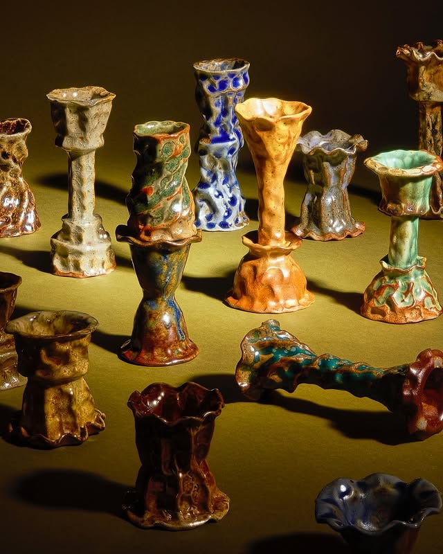 Meet Claire Resnick, the Philadelphia-based founder of Wonky Ware, her line of handmade ceramics. Claire reached out to me after I had written about losing my day job, and generously offered to send me one of her pieces as a pick-me-up. Instead, I thought…why don’t we give a piece to a Schmatta reader and give an independent artist a bit more exposure? And so, this month I am pleased to present this Wonky Ware vase, which will go to one lucky paid subscriber.