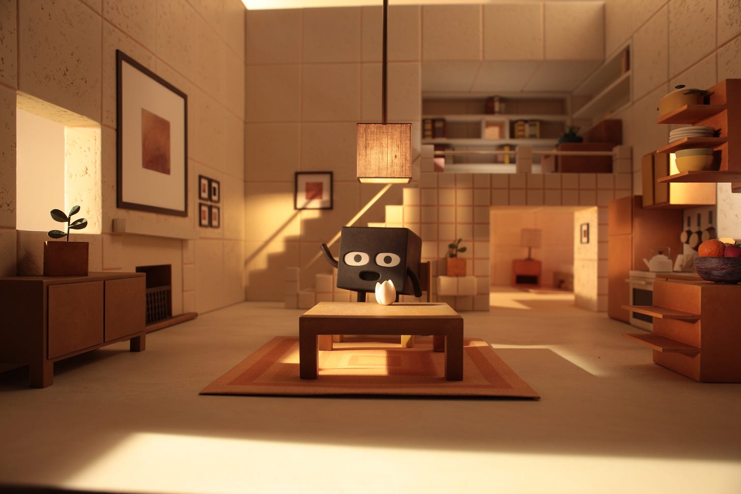From the start, the director Drew Hodges and I wanted the design to be minimalist without feeling alienating, and we settled on a muted palette to echo Jon Klassen’s illustrations. Apple did ask us to boost the colors in post, but the foundation stayed restrained and architectural.