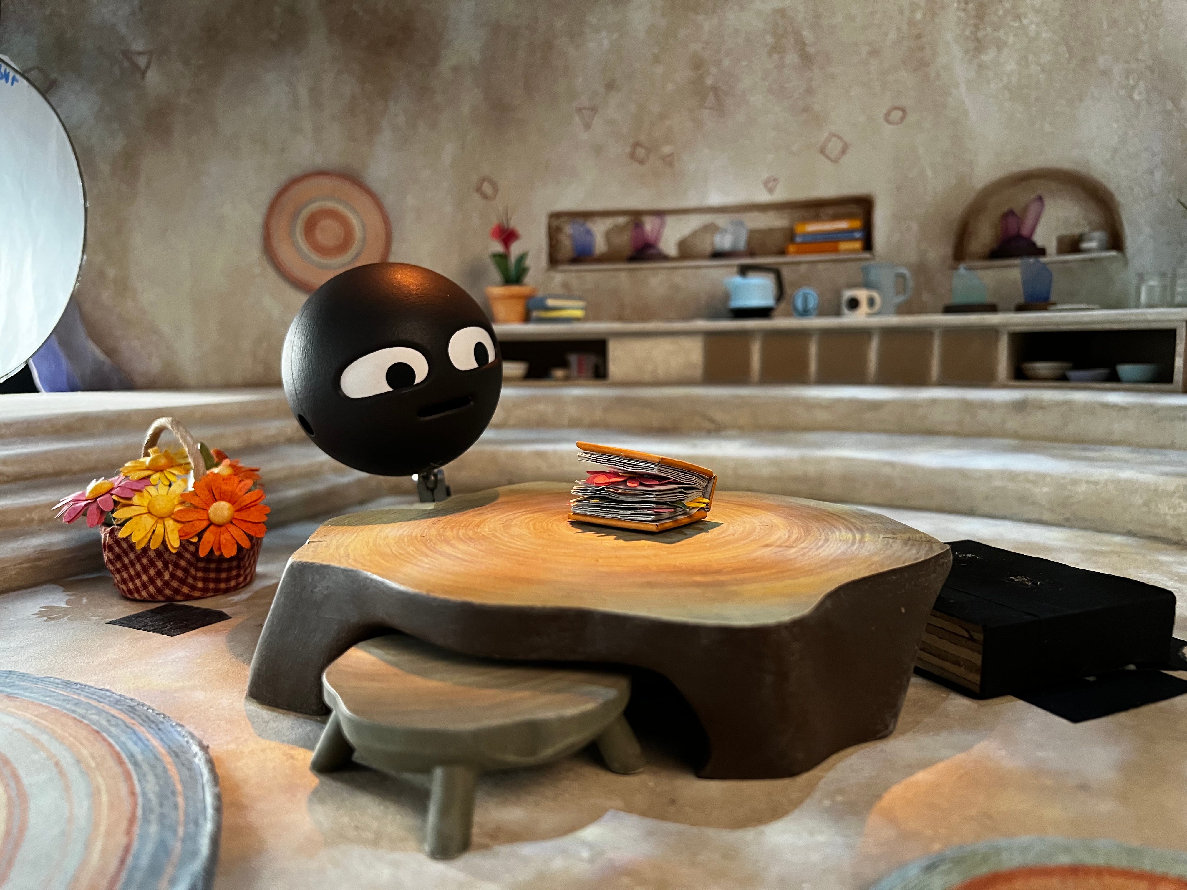 In the books, a square is a square. In stop motion, a square is a cube, a circle is a sphere, a triangle is a pyramid. We wanted the world to feel toy-like but not too literal. Rocks and trees couldn’t be overly realistic — they had to suggest materials without fully revealing them. That ambiguity was intentional.
