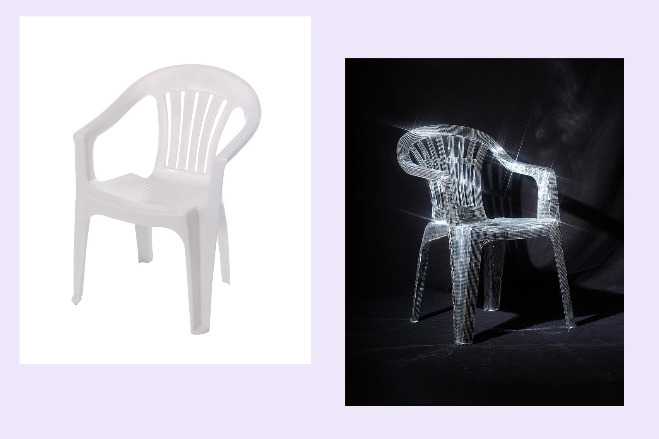You can’t actually buy HFA-Studio’s reconceptualization of a classic Monobloc chair aka plastic lawn chair. In their own words (translated from German): “The Glitter Monobloc, created through weeks of meticulous handcrafting, transforms the ubiquitous ‘Monobloc Chair’ from the epitome of affordable holiday and garden furniture into a sparkling art object.” Considering you can buy an unadorned plastic chair from Alibaba for $4.13, the glitter version is an ostensible step up.