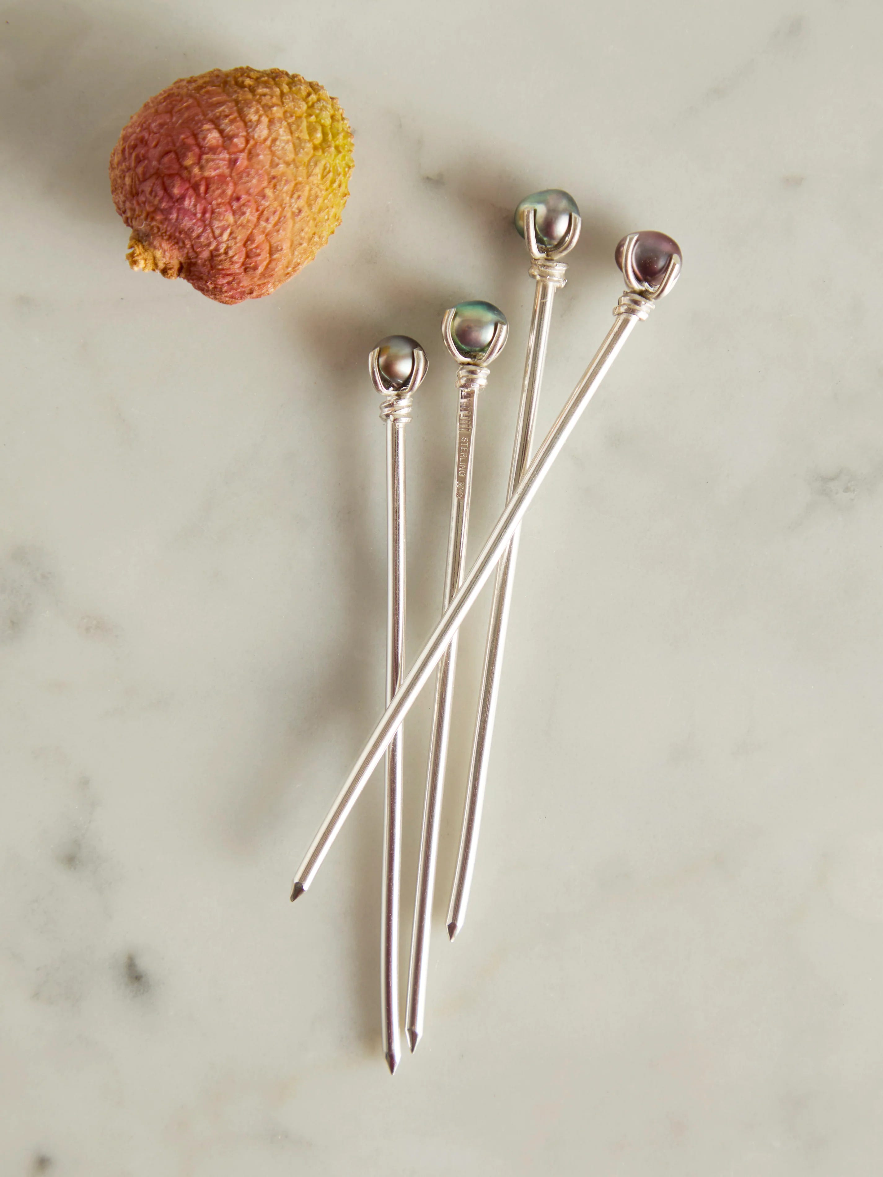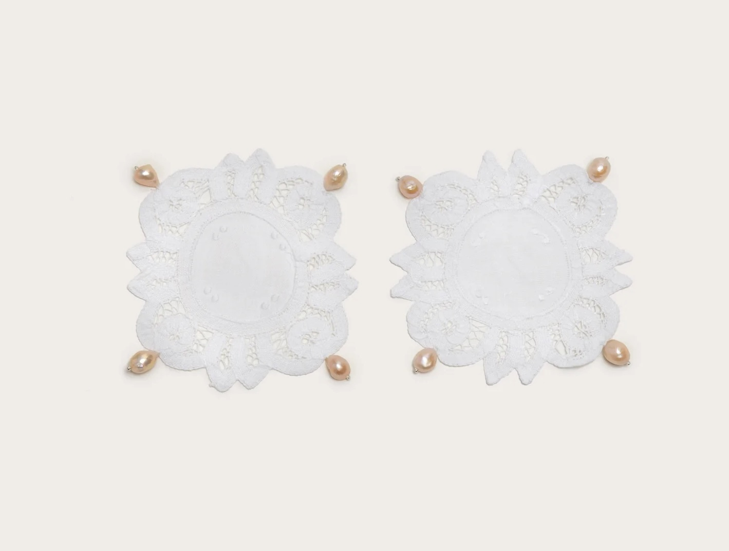 The Gohar sisters have long been dabbling in mother of pearl tableware. Now in: coasters adorned with freshwater pearls.