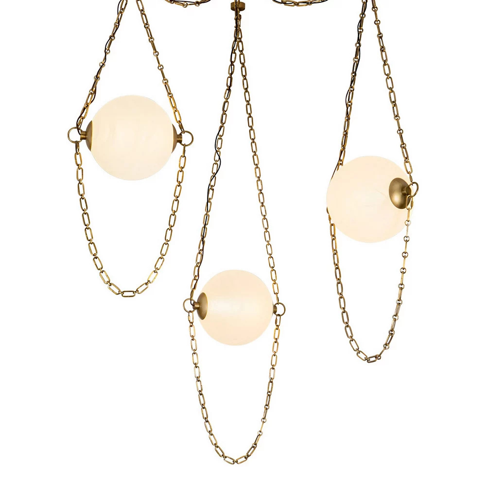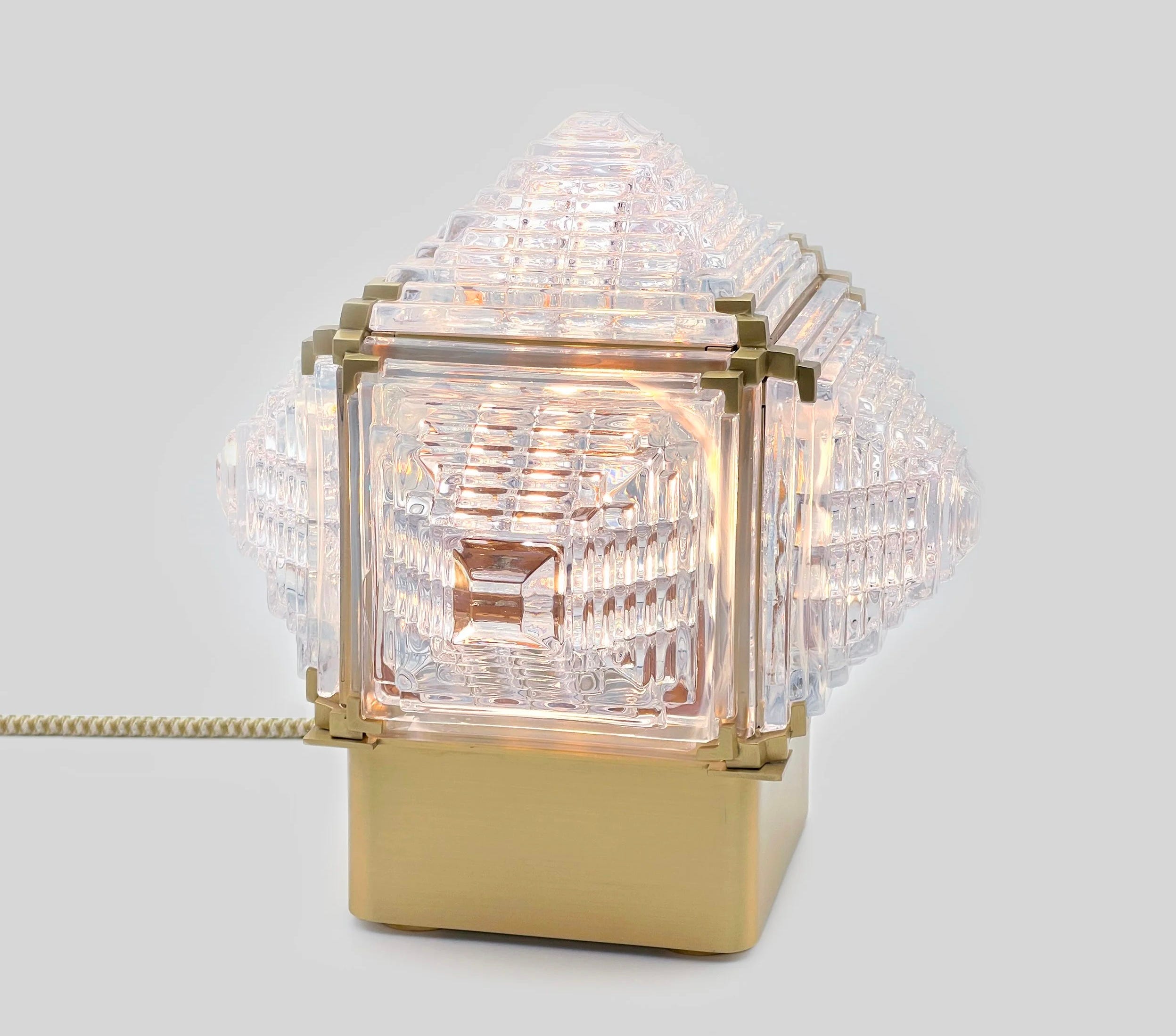 For this decadent light fixture, Rosie Li employs “custom pressed-glass lenses, each held in brass castings reminiscent of gemstone settings.”