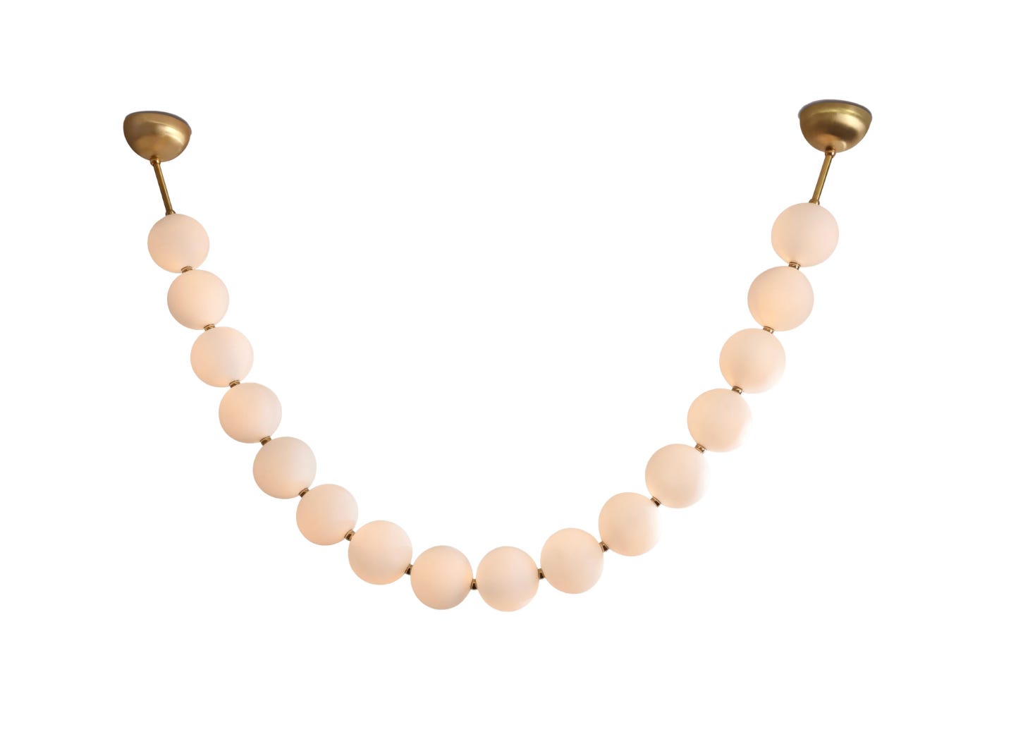 He also makes a similar light fixture assembled in a circle—like a pearl bracelet.