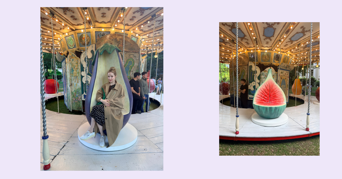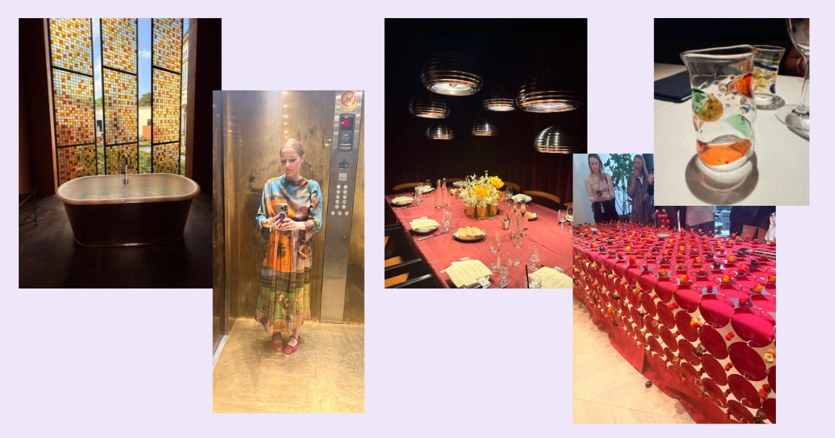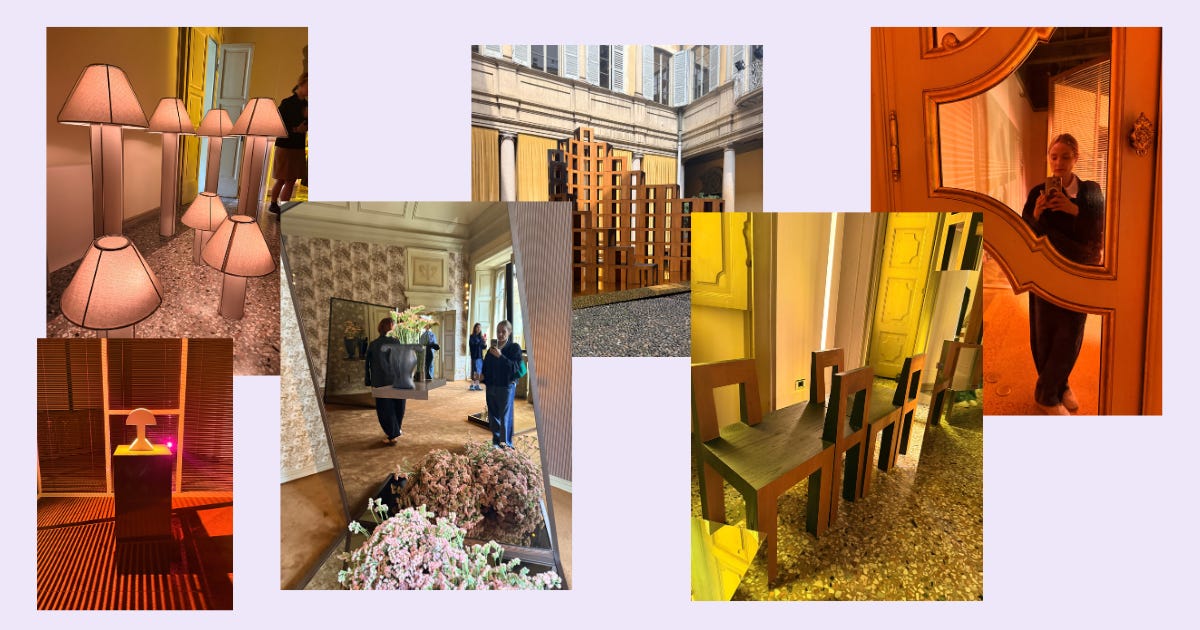 In the evening, I met up with my pal Sydney Gore to check out Laila Gohar’s fruit and veg carousel. This install (to promote Gohar’s fashion collab with the retailer Arket) got tons of attention and rightly so—it was nice to see something unserious and joyful. We then went to Wrong House’s cocktail before meeting up with the H&M Home crew for dinner. Before calling it a night, I roamed through the Duomo-adjacent department store Rinascente where I was appalled by a Yankee Candle kiosk and delighted by some Zafferano wine glasses I couldn’t fit in my carry-on.