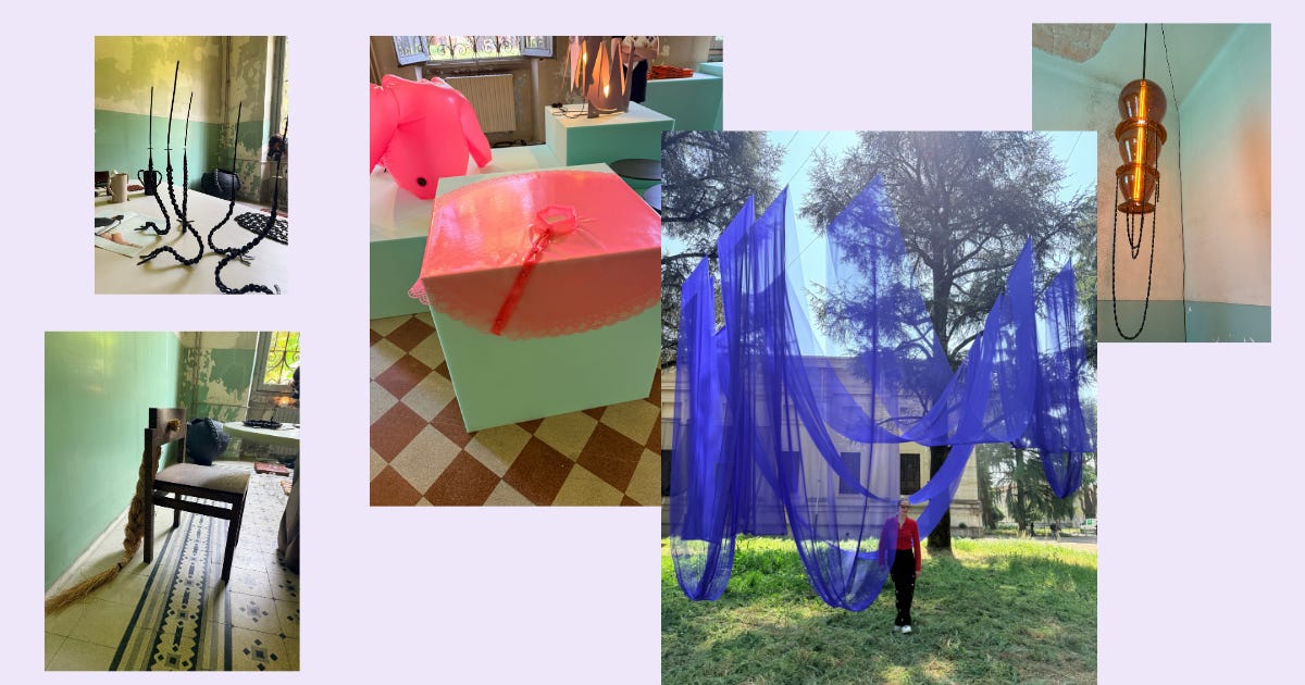 I chose the hospital first and was immediately struck by the setting: a cluster of crumbling stucco buildings scattered across overgrown grounds. Exhibitions unfolded in former doctors’ offices and operating rooms, some still outfitted with vintage equipment, lending the whole thing a distinctly haunted elegance.