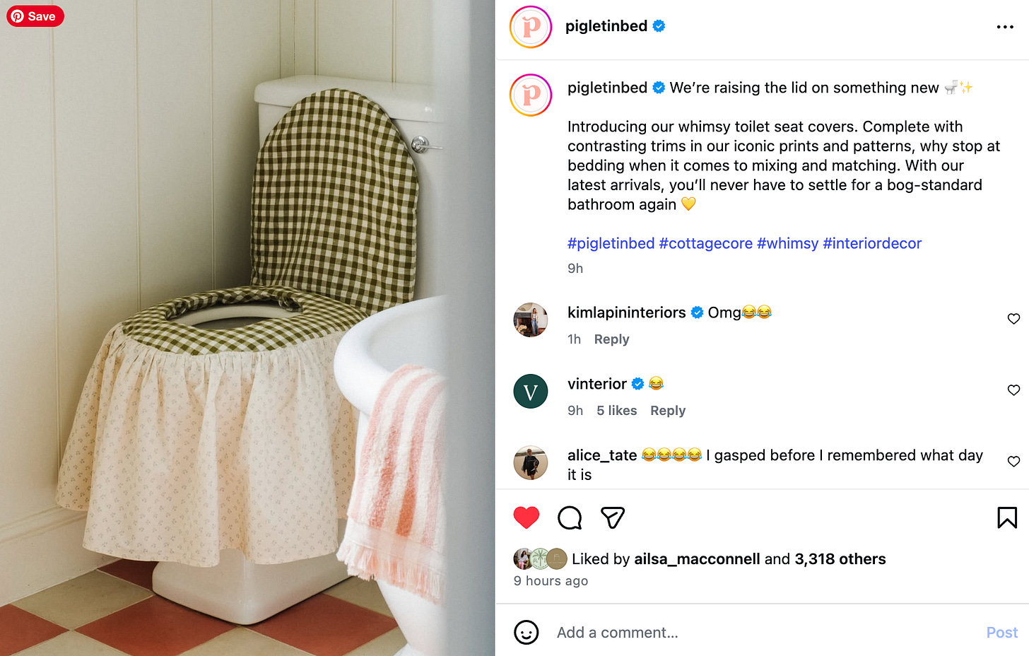 Welcome to April. I’ve been keeping an eye out for some good April Fool’s design jokes. So far, the winner is this “toilet cover” by Piglet in Bed: